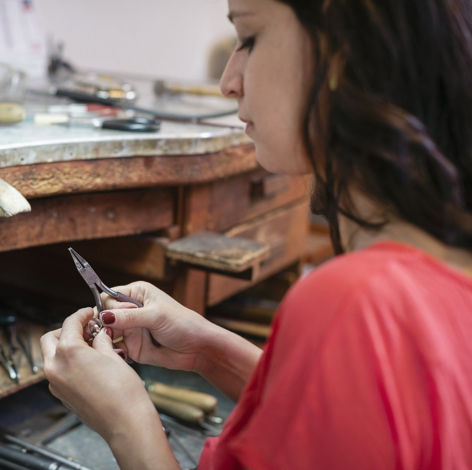 Born in Rome, after studying humanities, Chiara moved to Florence following her natural artistic calling. Through an education in artisan’s workshops, long intercontinental journeys and a taste for experimentation, she developed a creativity that we discover in her jewels, goldsmith creations that sway between classic and contemporary canons, at the same time free from formal bonds of style.
